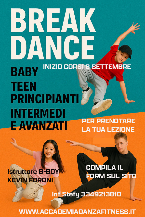La break dance è una disciplina di street dance che combina movimenti acrobatici, potenza fisica e creatività. È perfetta per chi vuole